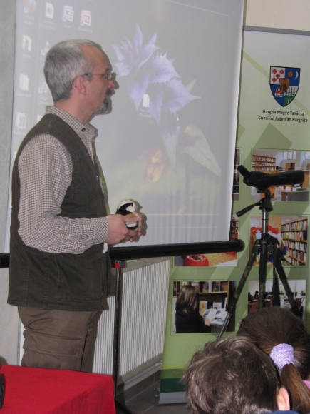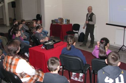 Szilárd Szabó, co-worker to the Hargita Megyei Környezetvédelmi Ügynökség [Environmental Agency of Harghita County] held unconventional classes about the conservation of the environment for groups of elementary school students in the library. He taught the children about the life and habits of our travelling birds and raised their attention to some issues concerning the protection of birds.