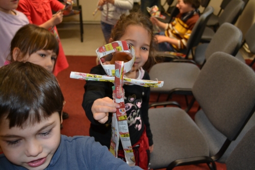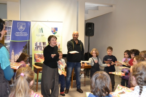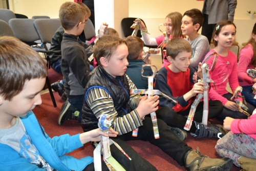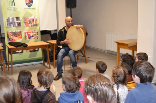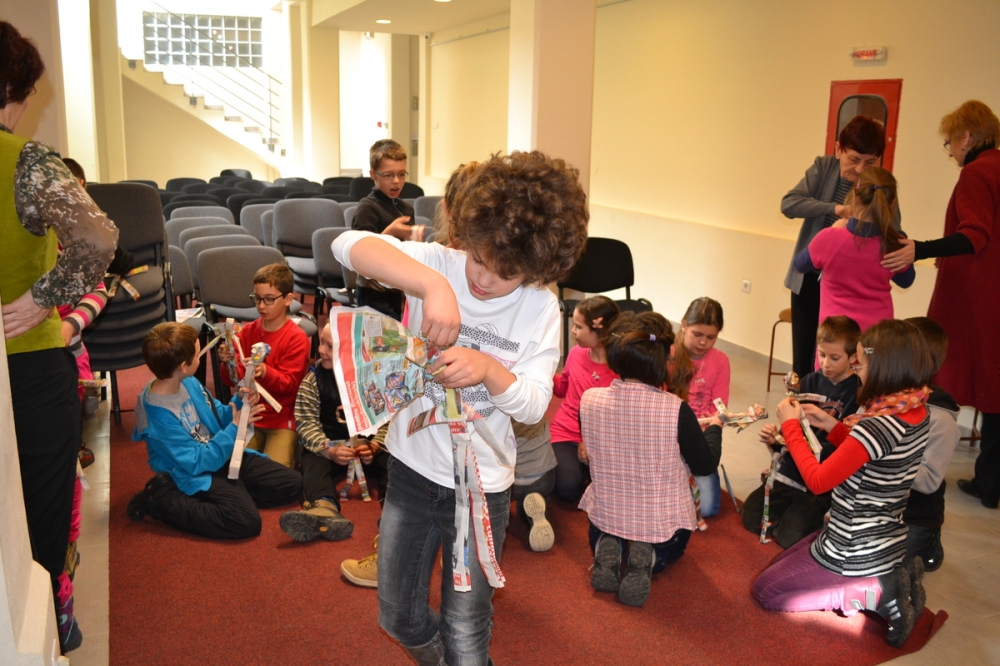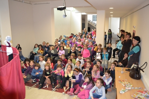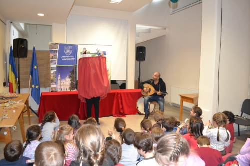 The children audience had a chance to follow the journey of Theseus, the Greek hero during a puppet show called Theseus. The children groups took part in an activity of making puppets as well on the 28th of February and the 1st of March, 2015. Two puppeteers were the guests of our library: puppeteer and musician Husam Abed from Jordan and Deák Réka, a student of the Art University from Targu Mures. (kijavitani)