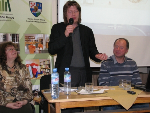 Zenés költői est keretében Deák-Sárosi László, Magyarországon élő parajdi származású költő, filmesztéta, nyelvész, gitárművész és meghívott vendégei: Véghelyi Balázs költő, a százhalombattai Üveghegy Kiadó kiadó vezetője,  B. Tóth Klára költő és festőművész-grafikus, valamint Kasó Tibor dalnok, gitáros-énekes mutatkoztak be a csíkszeredai közönségnek könyvtárunk előadótermében 2013. november 22-én.