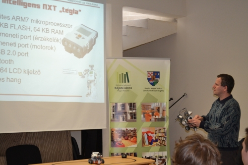 Csomós Róbert informatikus-tanár harmadik, illetve nyolcadik osztályosoknak tartott előadásai, foglalkozásai élményszerűek voltak. Összesen 44  diák vett részt a Robogóbék címmel tartott foglalkozásokon április 9-én és 10-én, szerdán és csütötrtökön. A nagyobbaknak elmagyarázta és be is mutatta helyben a nyomkövető, saját memóriával rendelkező robot működési elvét. A diákok kezükbe vehették, közelről tanulmányozhatták ennek működését.
