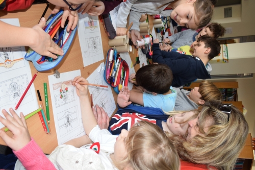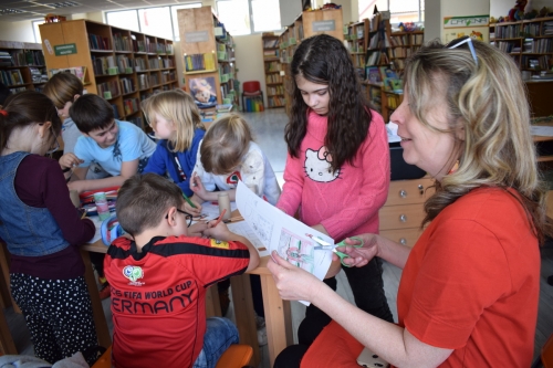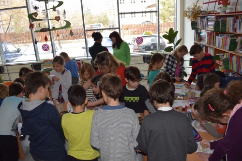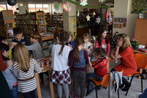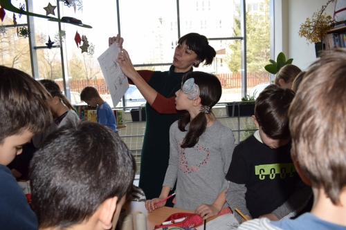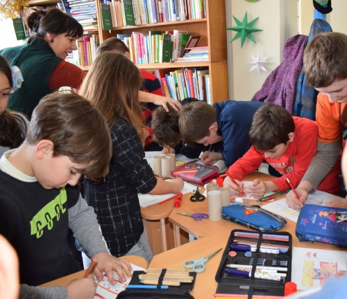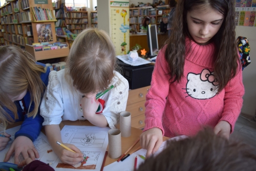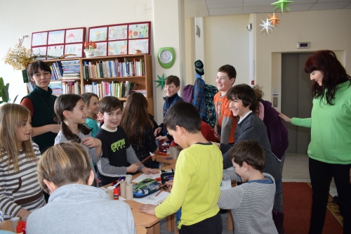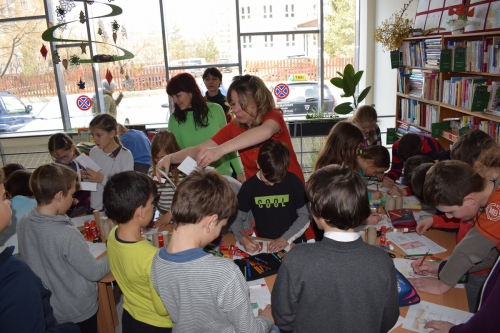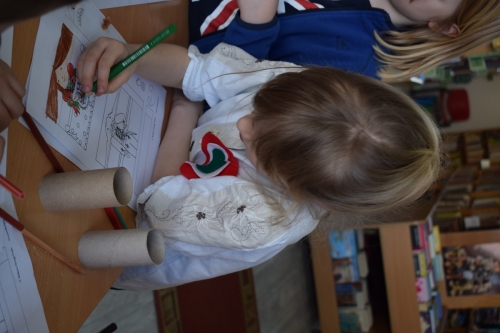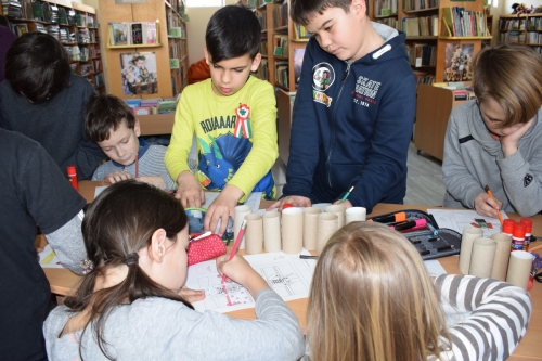 A Nagy István Művészeti Szakközépiskola kisdiákjai ünnepre hangoló kézműves fogalkozáson vettek részt a gyermekkönyvtárban március 15-én.